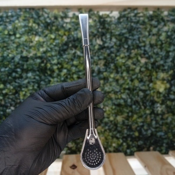 La bombilla preferida de todo matero. Fabricada íntegramente en acero inoxidable, combina la resistencia definitiva con la forma más cómoda para cebar. Es una pieza diseñada para el uso diario intensivo, manteniendo su brillo y calidad por años.